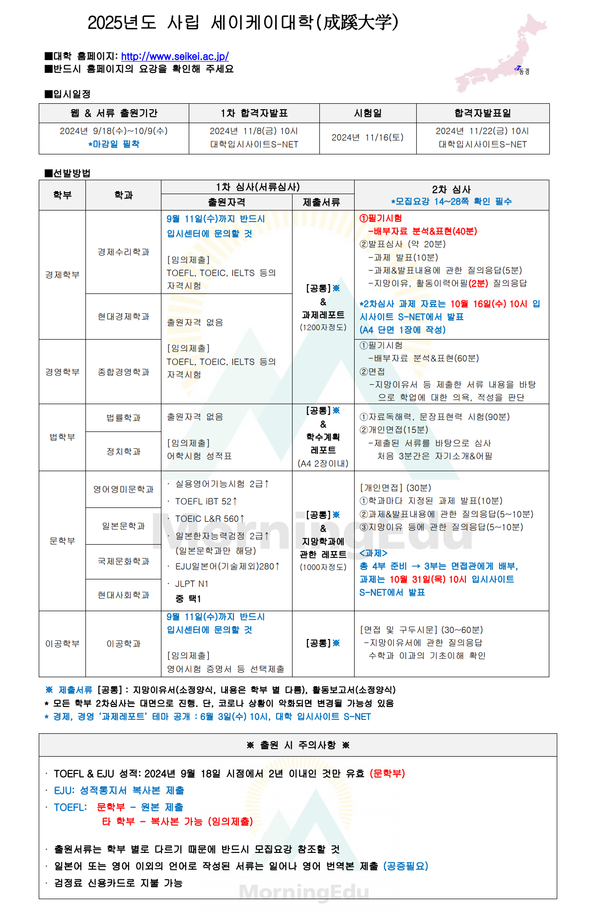 <사립> 2025년도 세이케이대학(成蹊大学) 작성자모닝에듀(주)|작성시간24.04.25|조회수295 목록 댓글 0 글자크기 작게가 글자크기 크게가 2025 세이케이 AO마루데스 경영학부 레포트 용지 - 20240412.pdf136.15KB2025 세이케이 AO마루데스 경제학부 레포트 용지 - 20240412.pdf135.09KB2025 세이케이 AO마루데스 공통 지망이유서 - 20240412.pdf231.23KB2025 세이케이 AO마루데스 공통 활동보고서 - 20240412.pdf231.50KB2025 세이케이 AO마루데스 모집요강 - 20240412.pdf1.04MB2025 세이케이 AO마루데스 문학부 레포트 용지 - 20240412.pdf133.09KB2025 세이케이 AO마루데스 외국인유학생 이력서_경비부담계획서 - 20240412.pdf236.44KB 첨부파일첨부된 파일이 8개 있습니다. png 파일 2025 세이케이대학.png 다운로드 pdf 파일 2025 세이케이 AO마루데스 경제학부 레포트 용지 - 20240412.pdf 다운로드 pdf 파일 2025 세이케이 AO마루데스 공통 지망이유서 - 20240412.pdf 다운로드 pdf 파일 2025 세이케이 AO마루데스 공통 활동보고서 - 20240412.pdf 다운로드 pdf 파일 2025 세이케이 AO마루데스 문학부 레포트 용지 - 20240412.pdf 다운로드 pdf 파일 2025 세이케이 AO마루데스 경영학부 레포트 용지 - 20240412.pdf 다운로드 pdf 파일 2025 세이케이 AO마루데스 외국인유학생 이력서_경비부담계획서 - 20240412.pdf 다운로드 pdf 파일 2025 세이케이 AO마루데스 모집요강 - 20240412.pdf 다운로드 다음검색 현재 게시글 추가 기능 열기 북마크 신고 센터로 신고 댓글 댓글 0 댓글쓰기 답글쓰기 댓글 리스트