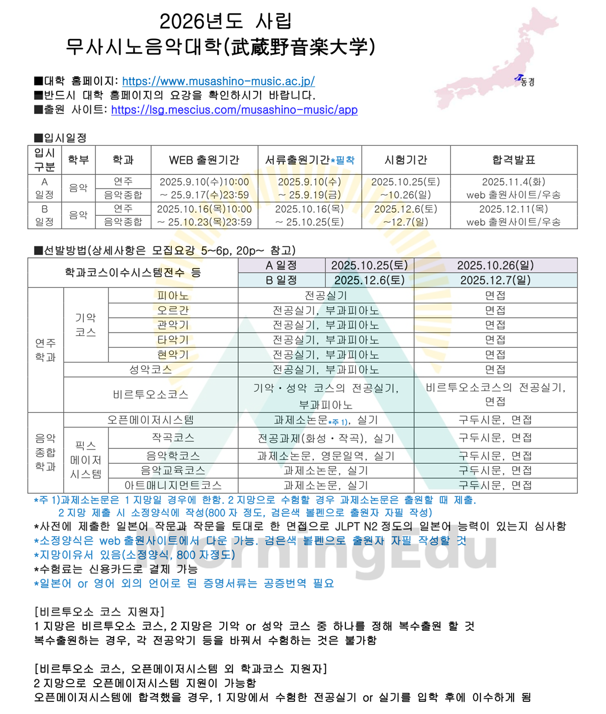 <사립> 2026년도 무사시노음악대학(武蔵野音楽大学) 작성자모닝에듀(주)|작성시간25.06.09|조회수73 목록 댓글 0 글자크기 작게가 글자크기 크게가 2026 무사시노음악 외국인유학생 모집요강 - 20250606.pdf4.12MB 첨부파일첨부된 파일이 2개 있습니다. png 파일 2026 무사시노음악대학.png 다운로드 pdf 파일 2026 무사시노음악 외국인유학생 모집요강 - 20250606.pdf 다운로드 다음검색 현재 게시글 추가 기능 열기 북마크 신고 센터로 신고 댓글 댓글 0 댓글쓰기 답글쓰기 댓글 리스트