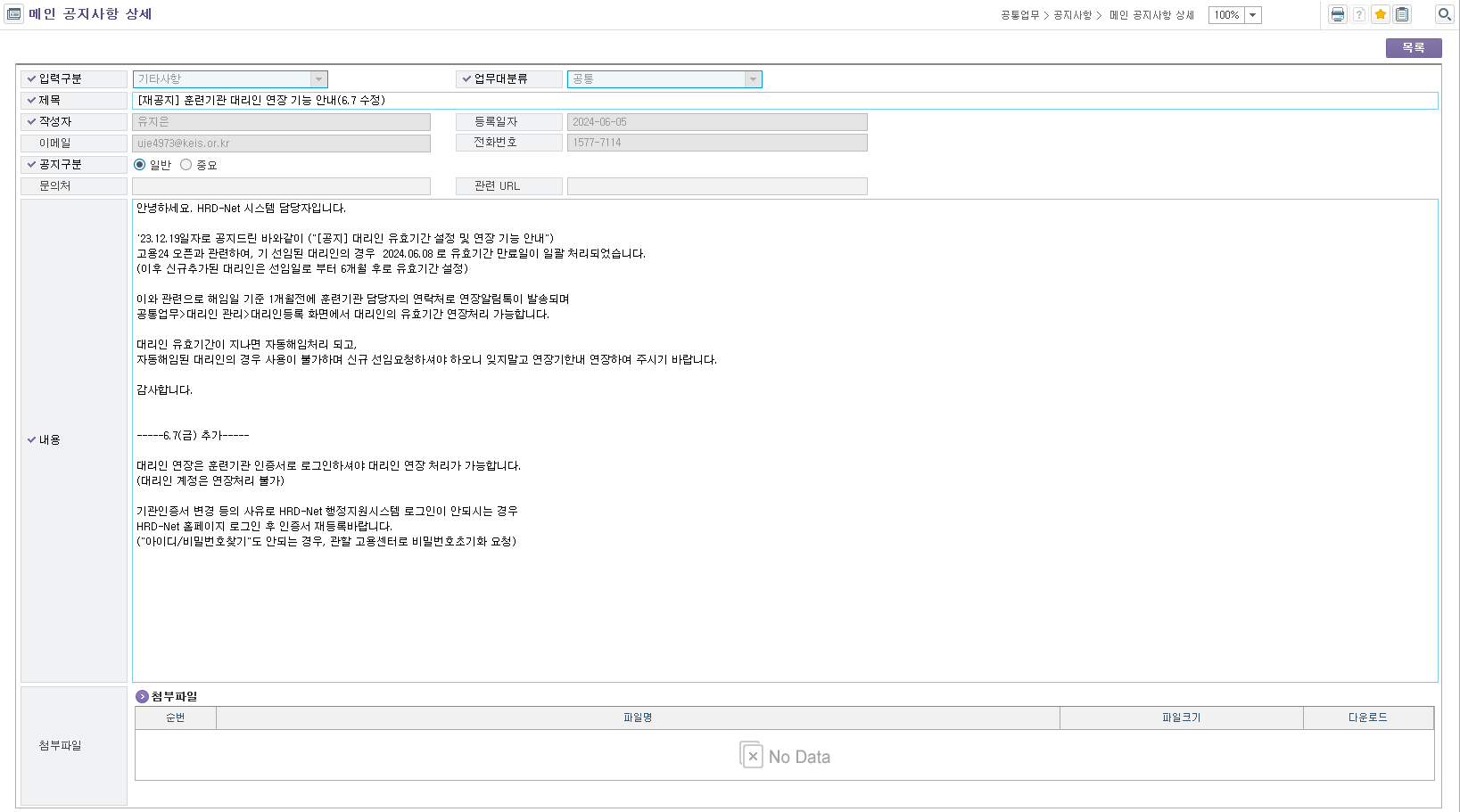 대리인 유효기간 설정 및 연장 기능 안내 관련, HRD-Net 공지사항 전달드립니다.
