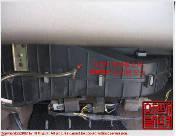 "이오나이저"를 설치하기 위해 구멍을 새로이 뚫을까? 고민하다 "DWD2" 노즐 위치를 이용하기로 결정