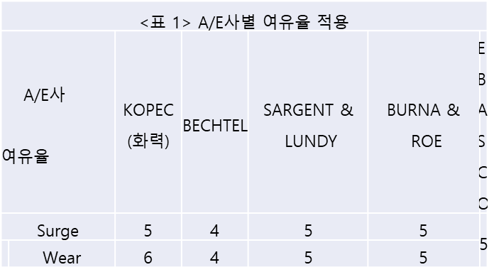 | 구분 | A/E 사 | 비고(500MW급) |