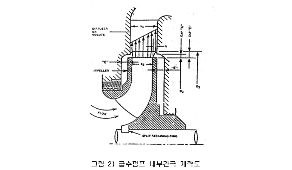 급수펌프에 임계간극(Critical Clearance)이란 압력차가 크게 발생하는 회전체와 고정체간의 간극(Wear Ring And Impeller, Balancing Device Cylinder Surfaces And Surfaces)과 회전차의 원주방향과 디퓨져와의 간극을 지칭하는 것으로서, 이들 간극은 펌프의 효율과 신뢰성에 영향을 미친다.