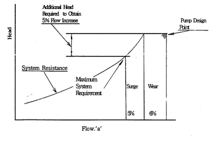 설계양정은 상기에서 결정된 설계유량에서 마모 여유율을 제외한 유량으로서 계산되며, 급수펌프는 출구압이 고온 고압이므로 적용되는 비중량 값에 따라 실제펌프의 양정에 차가 발생된다.