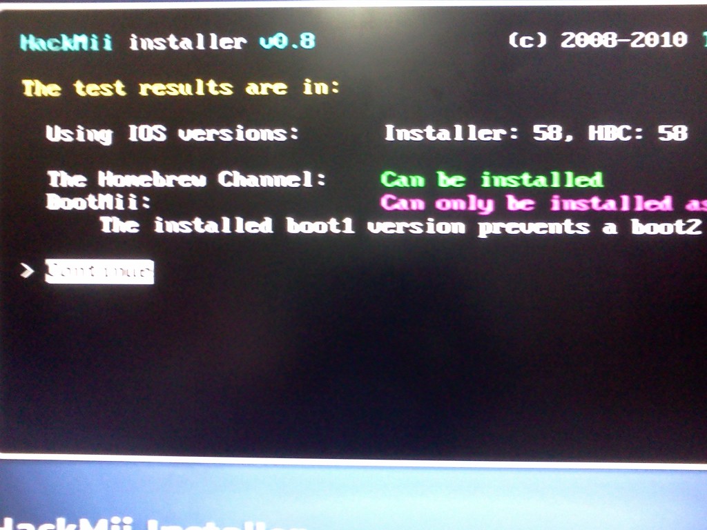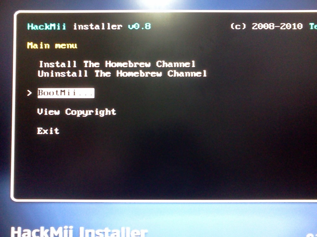 자 이번에는 BootMii를 설치합니다. 위와 같이 하신 후 A버튼을 누르세요.