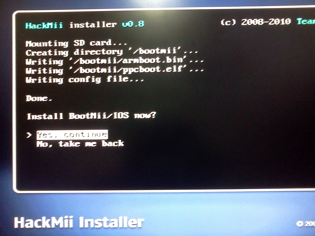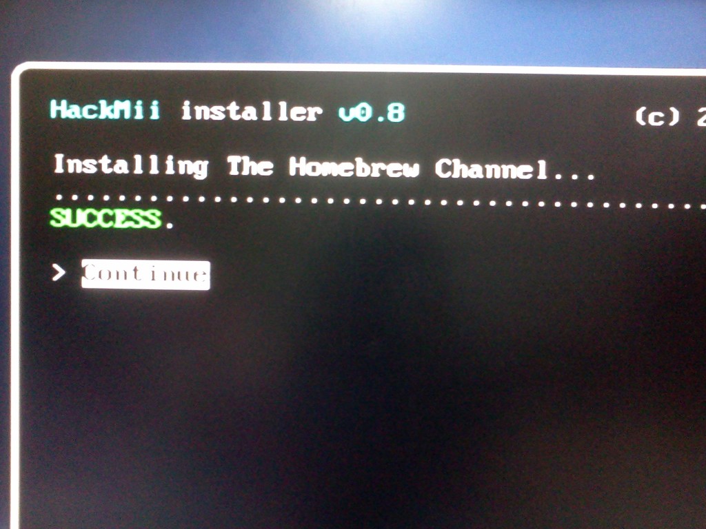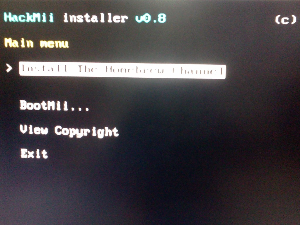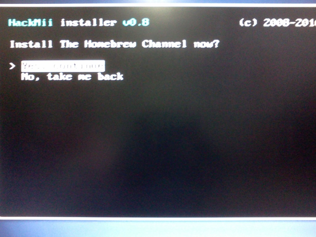 위와 같이 Install The Homebrew Channel을 선택하신 후 A버튼을 누르세요.