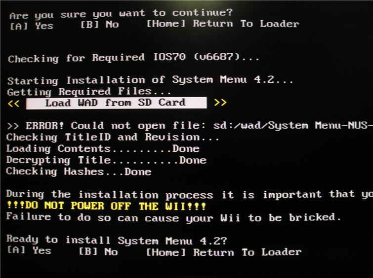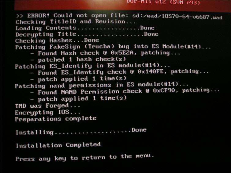 작성자ChrisWii 작성시간 10.12.30 시스템메뉴 설치하려고 IOS 36 을 선택하면 ERROR! Choose an IOS that accepts fake signing! Press A to continue. 라고 뜨는데 어떡해야할지 지금 가슴떨리고 죽겠어요 ㅠ