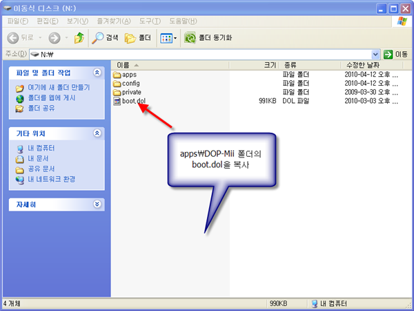 폴더에 있는 Boot.dol 파일을 메모리의 루트에 복사해 주세요. 그럼 아래와 같이 되겠죠?