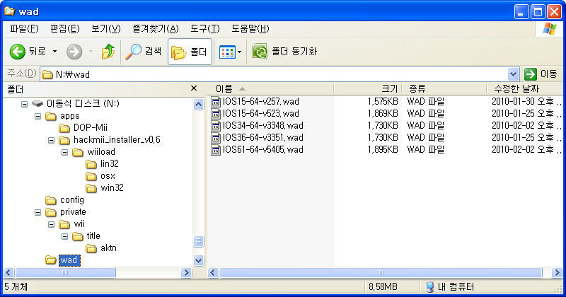 위의 각각의 폴더 속에 보시면 IOS15-64-v257.wad 와 같이 WAD 파일이 각각 한 개씩
