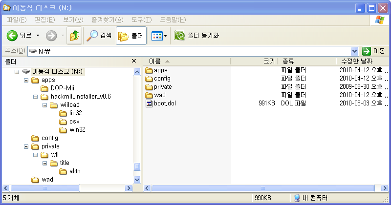 이제 hackmii installer를 다운로드 하신 후 SD메모리의 apps폴더에 압축해제 합니다.