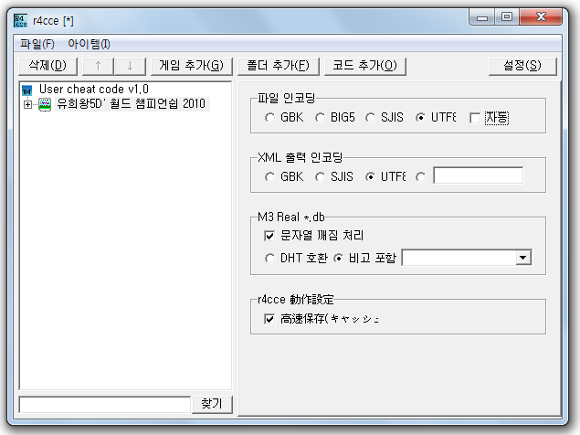 * 파일 인코딩 이외의 XML 출력 인코딩이나 M3 Real *.db, R4cce 動作設定등의 란은 손대지 맙시다.