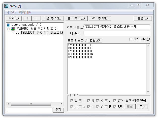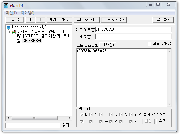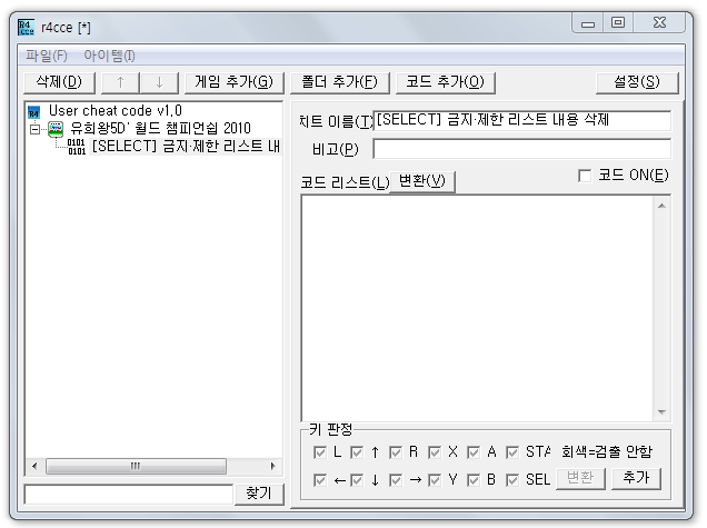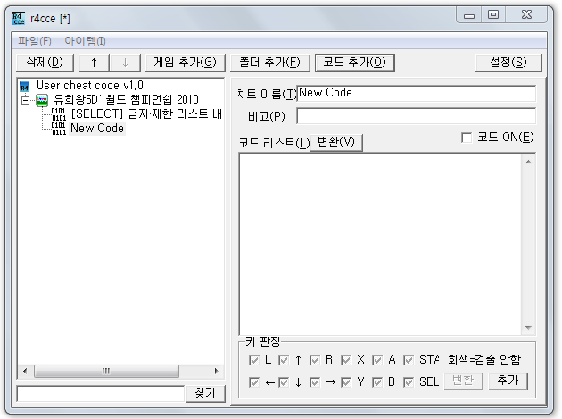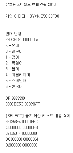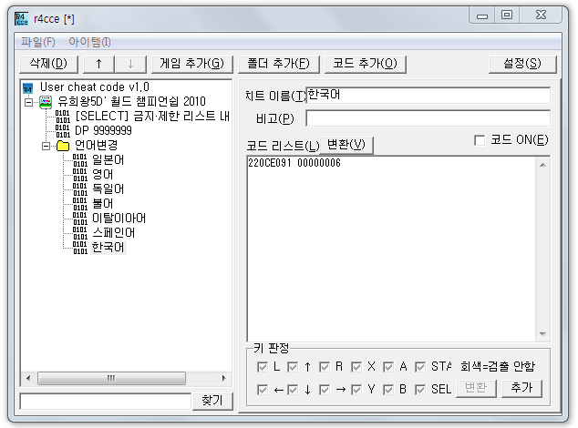 한글로 된 치트코드는 한글이 깨져 나온다는군요......
