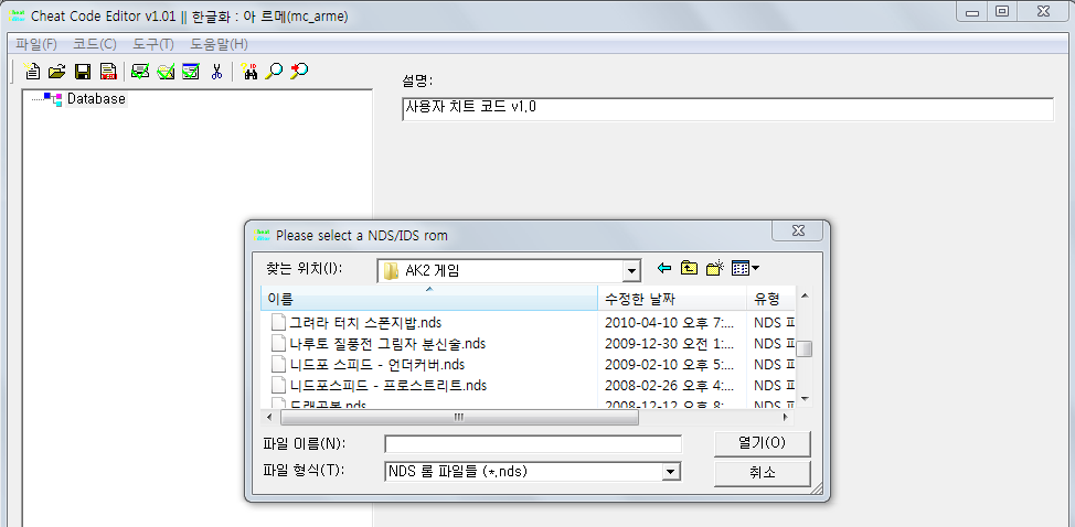 이때에는 자신의 롬파일의 아이디를 확인하여 나의 치트파일에서 아이디만 이에 맞게 바꿔 주면 되는데.....