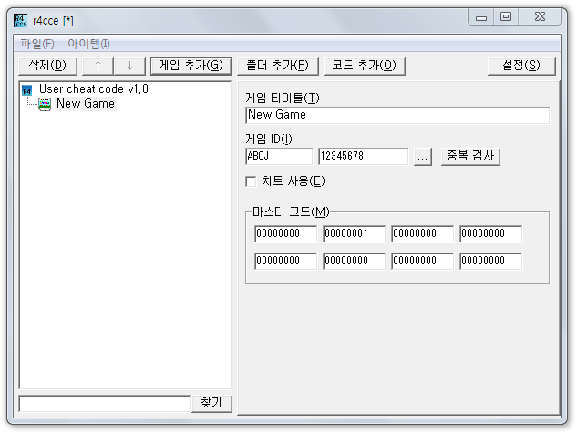 그리고 기존 파일에 추가로 만들 경우는 [중복 검사]를 클릭하셔서 동일 아이디의 치트가 중복되어 들어가는 일이 없도록 확인하시기 바랍니다.