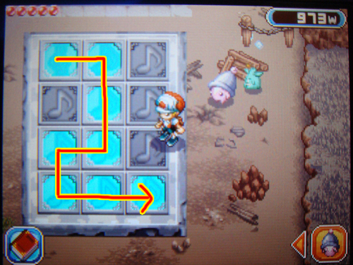 가보면 이렇게 생긴 발판이 있는데요 위 그림처럼 저 화살표 순서대로 밟아 주면 멜로디 오메가를 얻을 수 있어요~