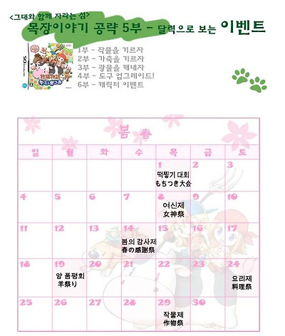 봄의 24일 요리제 料理祭 오전 10시부터 초원에서 접수를 받습니다. 12시까지 접수를해야 하며 접수할 때 자신이 어느 부문(간식, 요리 등)의 요리제에 참여하는 것인지 선택해야 합니다. 접수 후에는 심사 받을 음식을 가지고 6시까지 초원에 가야 합니다. 심사는 회복도와 사용한 재료가 많을 수록 유리합니다.