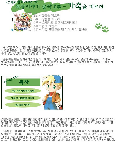 Q. 벼까지는 길렀는데, 그 외의 곡물 씨앗은 어떻게 구하는지요?(밀, 콩....) A. 벼 외의 곡물은 각계절의 작물을 각각 100개씩 출하하면 된다고 합니다. 즉 봄의 감자100개와 오이100개를 출하하면 밀이 나오는 거죠. 여름과 가을도 마찬가지로 메밀과 콩을 얻을 수 있습니다. 하지만 제가 해본게 아니라서 확실하지는 않습니다.