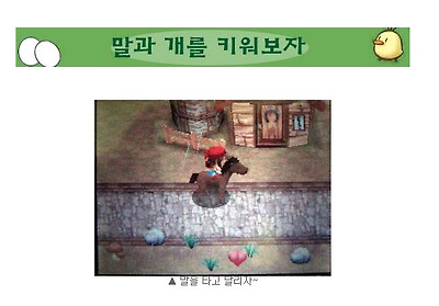 개와 말의 머리에 손 표시가 뜨면 옆에 가서 터치한 후 열심히 쓰다듬어 줍니다.