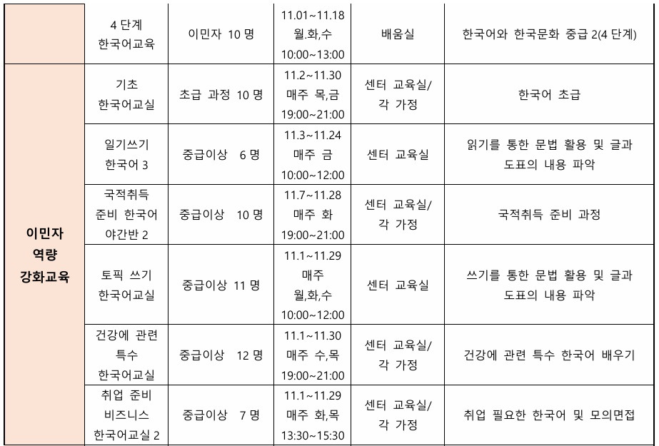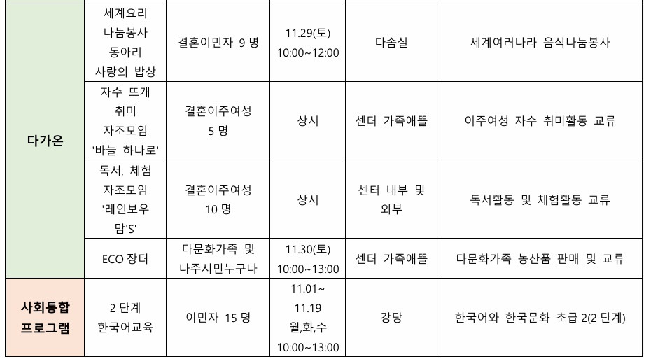 나주시 가족센터 11월 프로그램 일정표