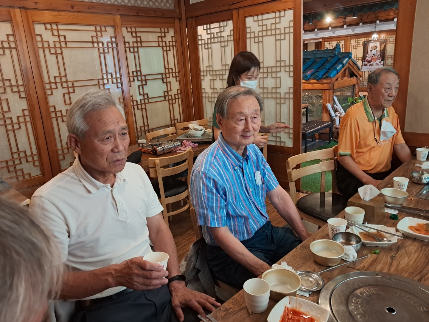 | 오랬만에 대경회 (회장 이종길) 모임을 가졌습니다. 3개월만에 만나뵙는데 왜 이리 오랫만으로 느껴지는지? 참으로 뵙고 싶었습니다. 이런저런 사유로 못나오신분도 계시지만 건강하신 굿굿하신 모습을 뵈니 정말 반가웠습니다. 모임장소 변경도 쉬운(?)일이 아니어서 유명세가 있는 이촌동에서 만났습니다, 늘 같이 근무하시든 김종근,박명국 선배님 을 떠올리며 아쉬워 하기도 하며 우리 동우회 발전과 동인 선후배 모두의 건강을 기원 하기도 하였습니다. 이제는 화제가 당연히 건강이 되는것 같습니다 발뒷굼치 들기, 손끝으로 머리치기,맨발로 걷기,등등 유익하고 실천하기 어려운 운동 들의 설명도 듣고, 이래서 모임을 자주 가져야 하는구나 하는 생각을 하였습니다, 어느선배님은 건강이 좋지 않다는 소식은 참 듣기 싫은데, 다음 만날때까지 선배님 모두 건강하십시요, 마석,일산,동백,안양,분당,군포,이화동,방배동등 원근 각지에서 오시느라 수고 하셨습니다. (이번달 사진은 일류 사진작가 출신이 촬영한 것임) 나와주신분(존칭생략) 권정칠,김상구,김직현,,손영창,신영섭, 이정원,이종길,이준영,,임학근, |