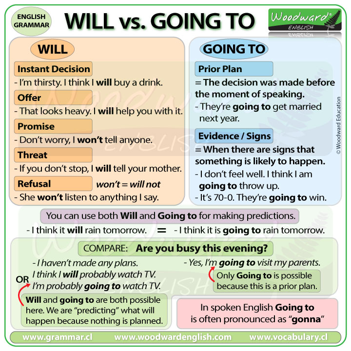 Will vs. Going To - The difference between WILL and GOING TO in English