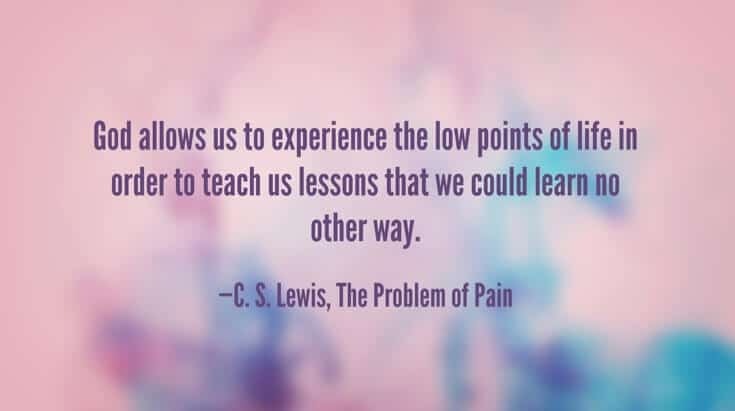 God allows us to experience the low points of life in order to teach us lessons that we could learn no other way. —C. S. Lewis, The Problem of Pain