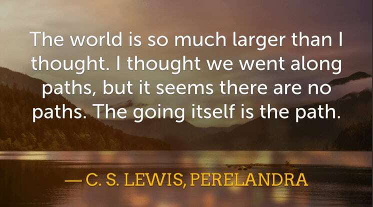 The world is so much larger than I thought. I thought we went along paths, but it seems there are no paths. The going itself is the path. —C. S. Lewis in Perelandra