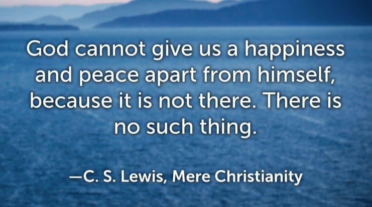 God cannot give us a happiness and peace apart from himself, because it is not there. There is no such thing. —C. S. Lewis, Mere Christianity