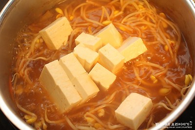 푹끓인뒤에 콩나물 넣고 냄비뚜껑 닫고 끓여주세요