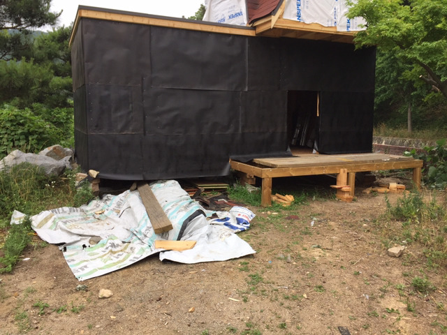 농막 박공합판 루핑펠트 서포트해체