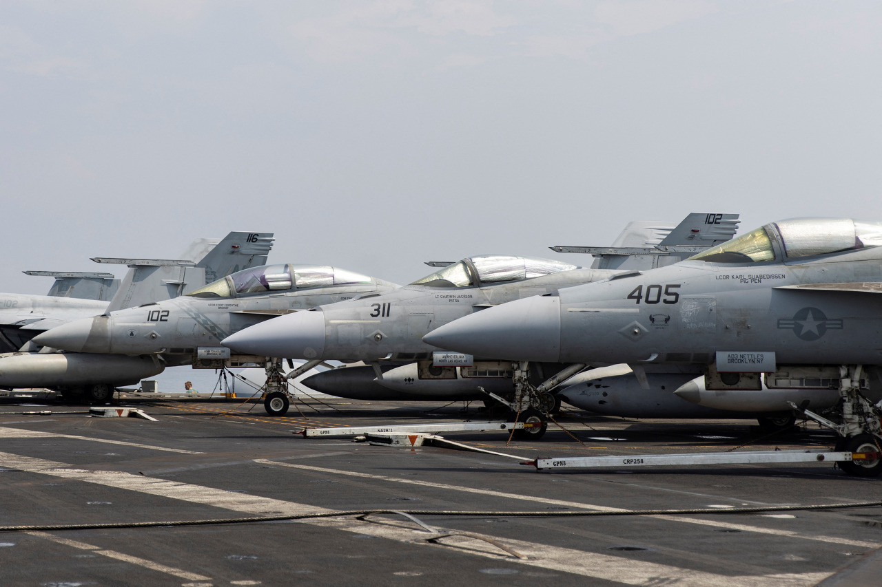 U.S. Navy F-18 fighter jets are parked on the deck of aircraft carrier USS Ronald Reagan (CVN 76) during a goodwill visit in Manila, Philippines, October 14, 2022. REUTERS/Eloisa Lopez