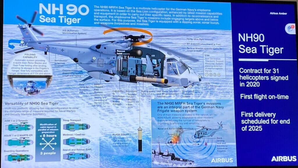 “The Sea Tiger is also an NFH but its role will focus more on anti-submarine warfare (ASW) as well as anti-surface warfare (ASuW) missions. This makes a total of 131 NH90s delivered to German forces making them the largest NH90 operators in the world,” stated Axel Aloccio, president of NH Industries on the day.