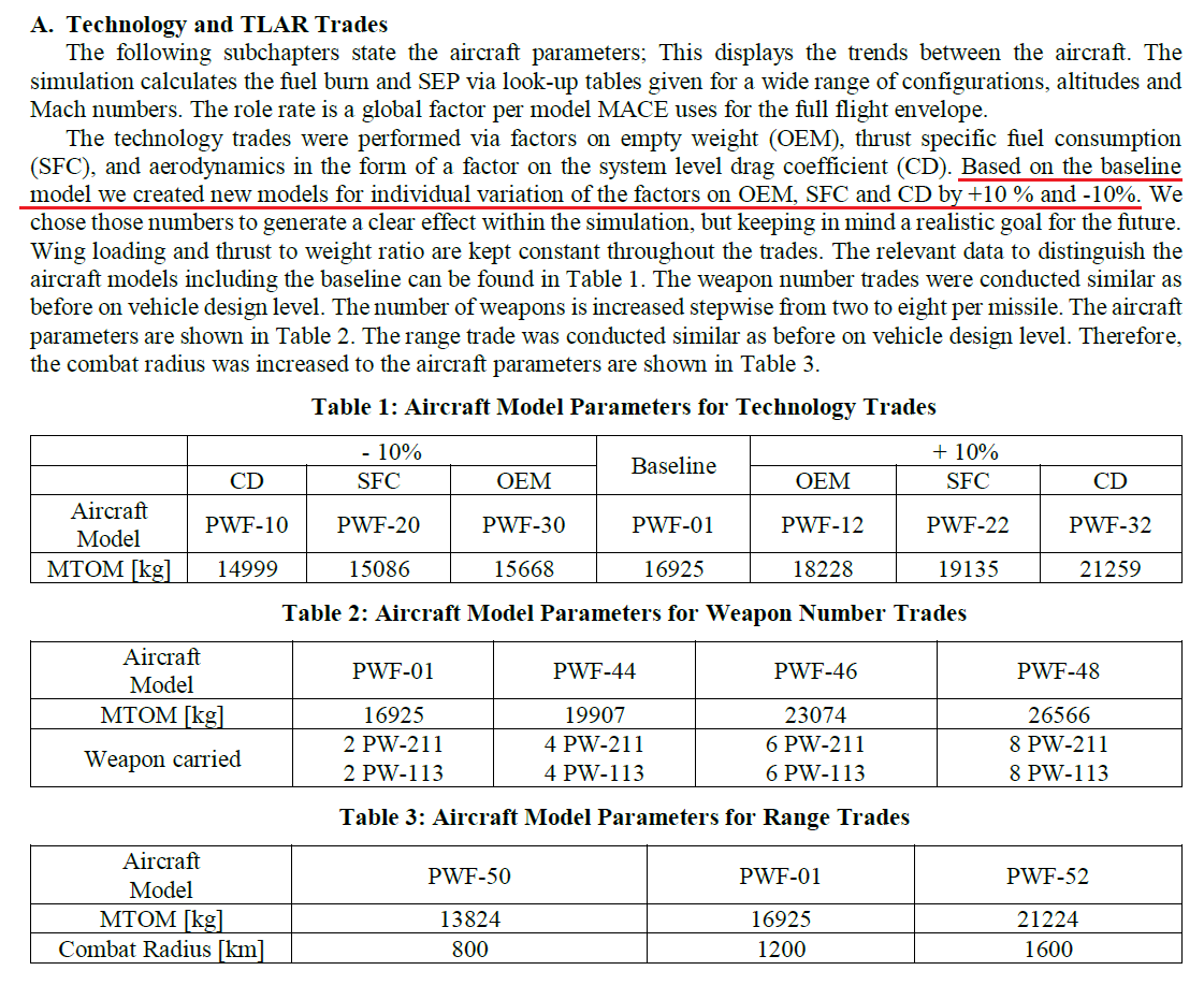 독일과 미국 저자들이 쓴 2023년 AIAA 논문에서 전투기의 성능에 대한 trade-off 연구를 할 때 empty weight, 연료 소비율, 그리고 항력계수에 +- 10%를 했네요.