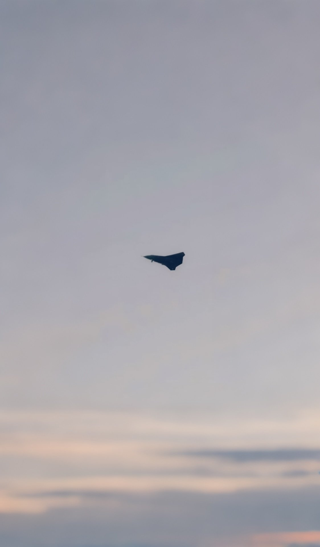 최근 등장한 중국 신형기의 첫 이미지 중 하나. (출처 X) 특징 최근 공개된 이미지 속 항공기는 날카롭게 뻗은 전방 동체와 노즈 섹션이 동체 중간쯤에서 윙(주익)과 자연스럽게 이어져 있다. 크게 후퇴각이 적용된 날개는 양 끝이 잘려 있고, 트레일링 엣지(뒷날개)에는 눈에 띄는 삼각형 연장부가 더해져 ‘W’ 형태 구성이 나타난다. 수직안정판이나 그 외 별도 꼬리날개는 없다. 넓은 동체는 내부 연료와 장비 탑재 능력이 상당할 것으로 보이지만, 무장창의 세부는 하부에서 볼 수 있는 범위 내에서는 확인되지 않는다.