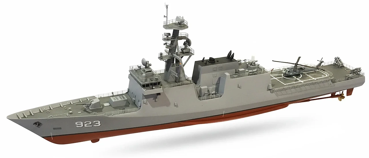 2020년 원래 FFG(X) 경쟁에 제안됐던, NSC 기반 F4923 강화 초계 호위함 개념에 대한 HII의 모형. ESSM 미사일용 12셀 Mk 56 수직발사기, 76mm 함포, 근접방공용 RAM을 갖추고 있으며, 센서로는 회전식 AESA 레이더, STIR 2.4 사격통제 레이더 2기, 킹클립 선체고정 소나, 소형 CAPTAS-4 예인 소나가 포함됐다.