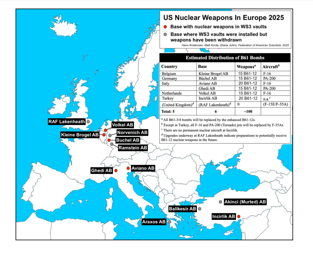 FAS estimates that around 100 U.S.-owned B61-12 gravity bombs are available across the aforementioned NATO air bases in Europe.