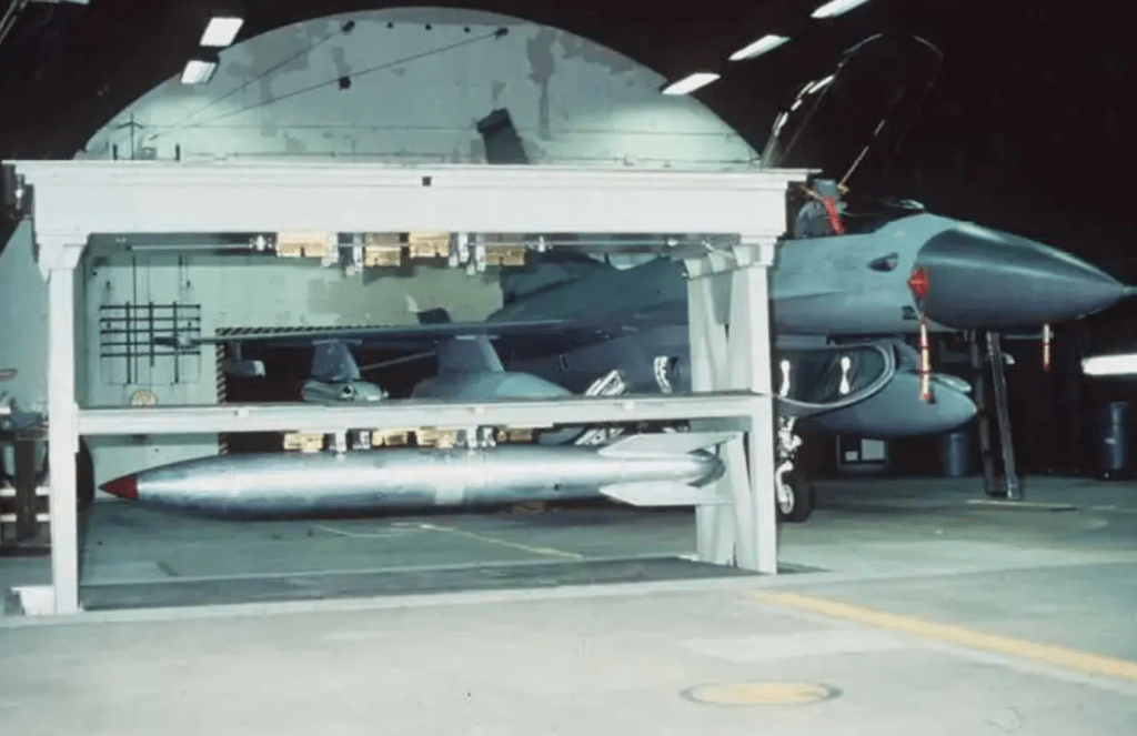 A Weapons Storage and Security System vault of the type used at NATO airbases in Europe, seen here in the raised position holding an older B61 variant. Public Domain/WikiCommons