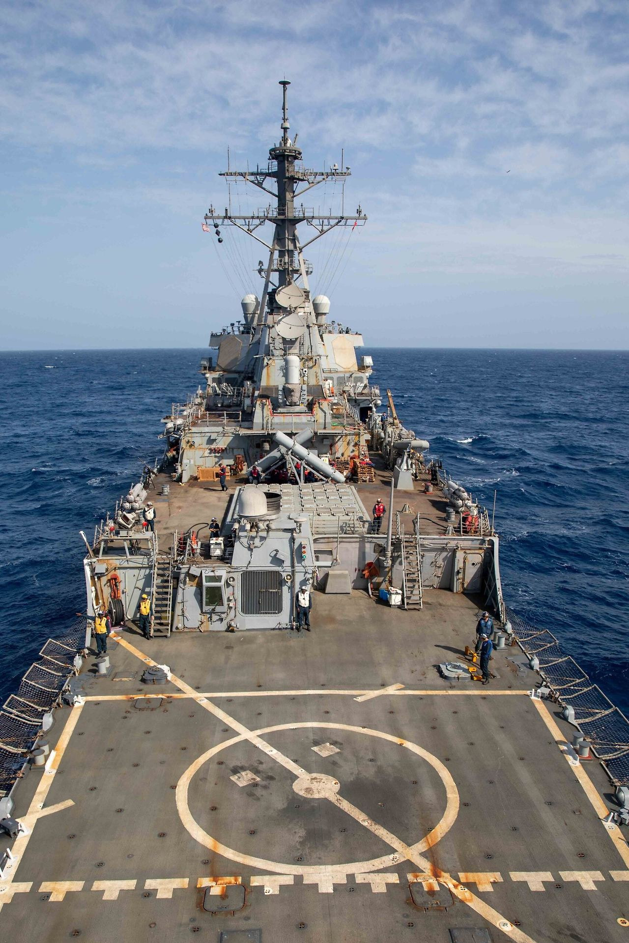 USS Stout (DDG-55) sails in the U.S. Central Command area of responsibility on April 4, 2025. US Navy Photo