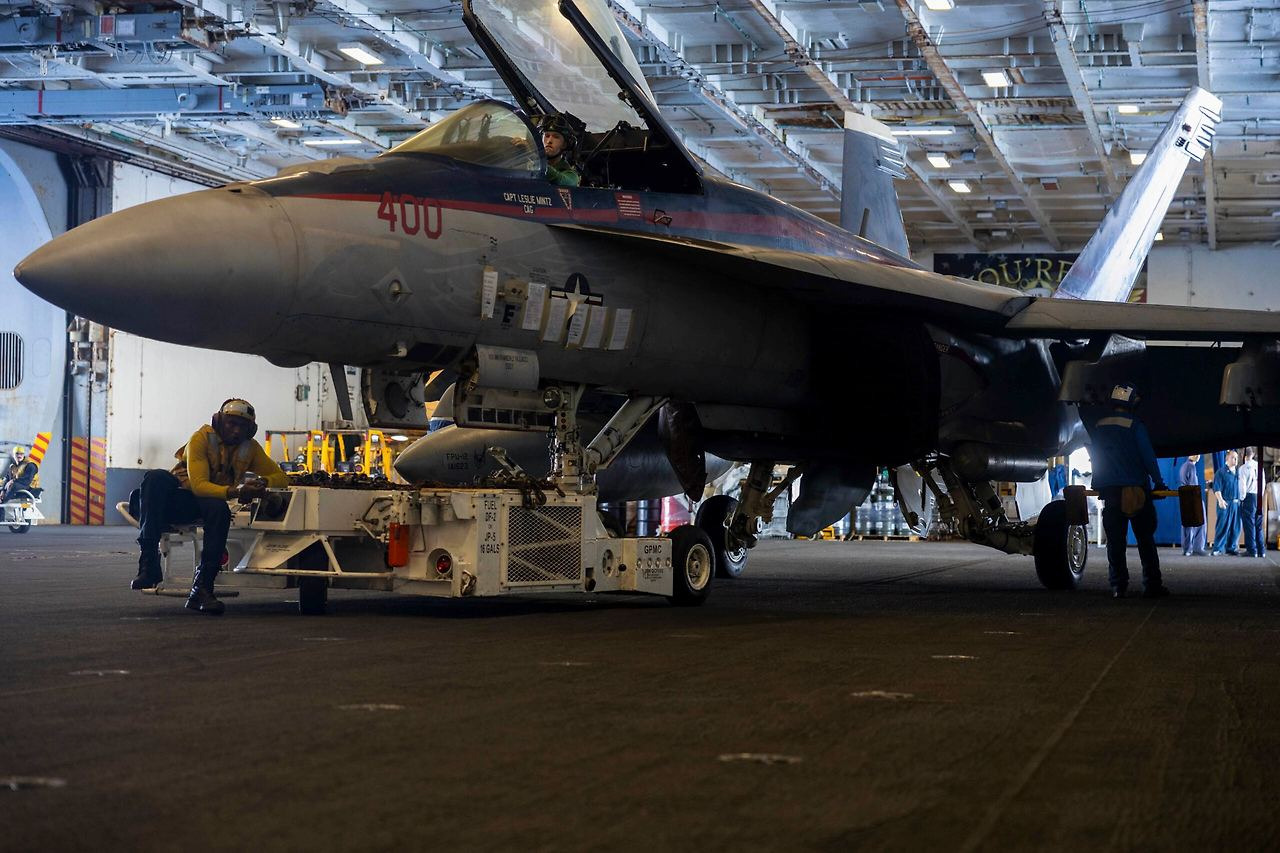 ‘레드 리퍼스’ VFA-11 소속 2인승 슈퍼 호넷은, 5월 6일 밤 9시경 해리 S. 트루먼에 착함을 시도하던 중, 전투기가 걸었던 어레스팅 와이어가 끊어지면서 홍해로 추락했다. 두 명의 승무원은 탈출해 무사히 구조되었다고, USNI News는 이전에 보도한 바 있다.