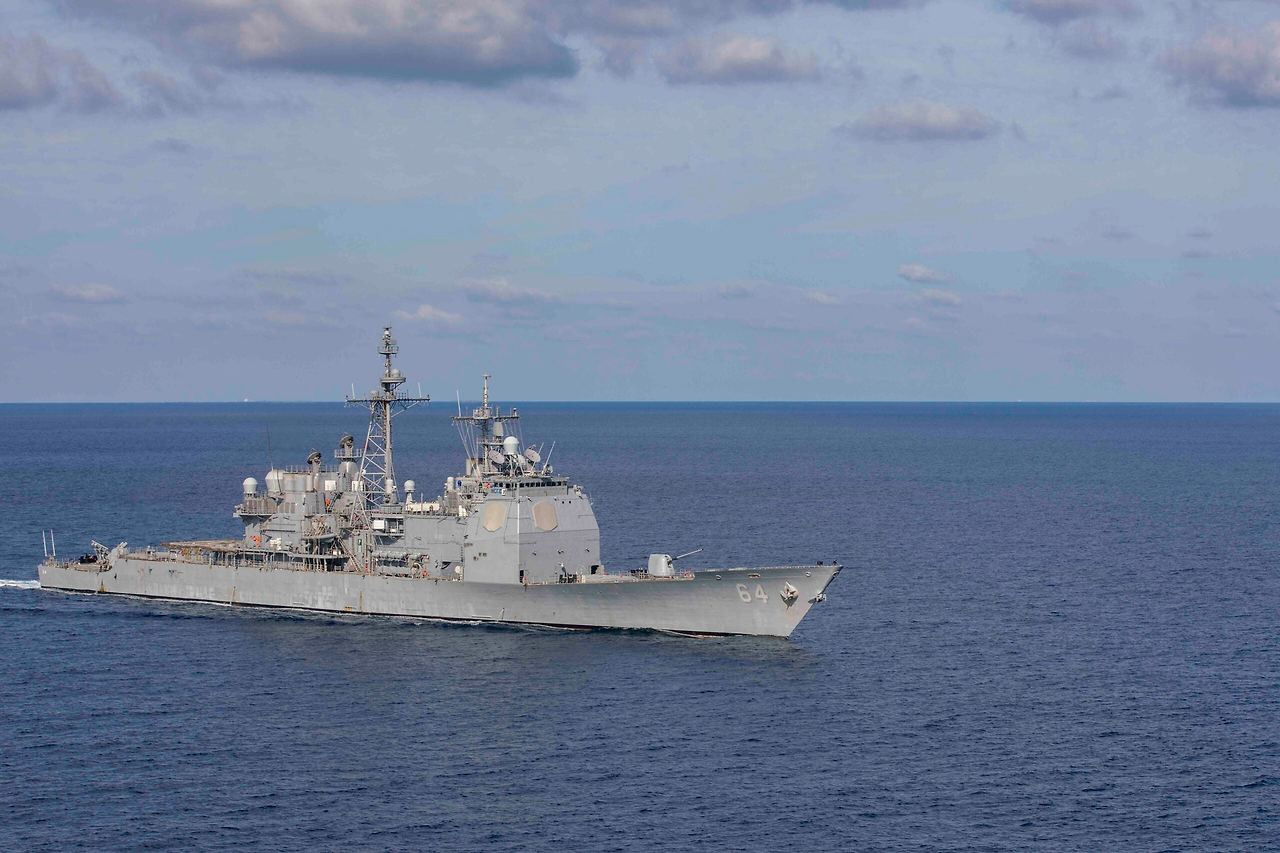 타이콘데로가급 유도탄 순양함 게티즈버그함(USS Gettysburg, CG-64)이 2024년 12월 16일 미 중부사령부 작전구역에서 항해 중인 모습. 미 해군 사진