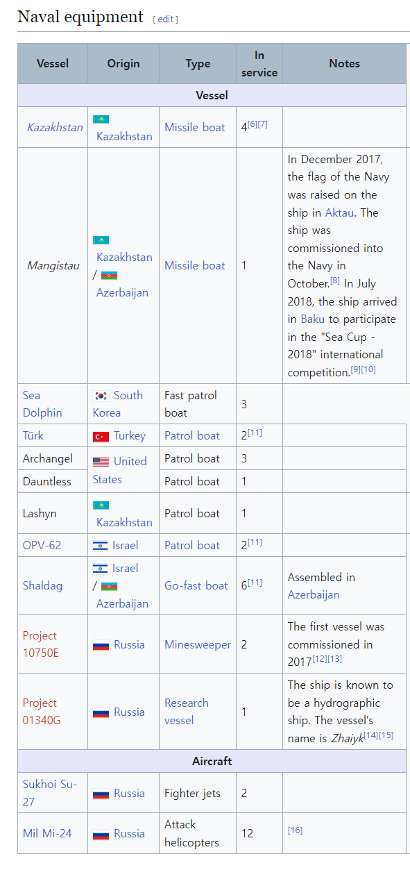 카스피해는 북서쪽-서쪽은 러시아, 남쪽은 이란 수역인데 양국이 협력관계이고 러시아의 카스피해 함대가 해역 안에서 가장 큰 세력입니다. 카자흐스탄 해군은 미사일 고속정 2척, 순찰정 2척, 소해정 1척으로 구성돼 있다고 하네요.