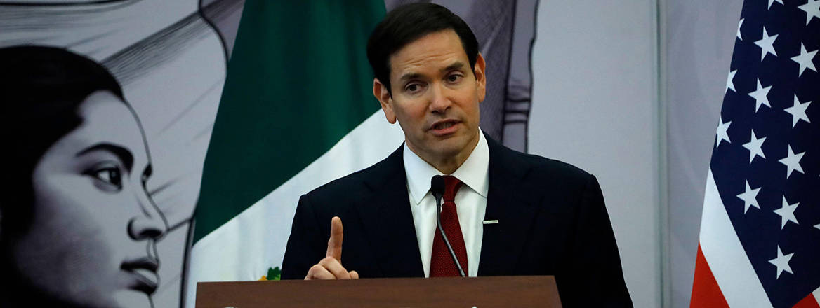 2025년 9월 3일 멕시코시티에서 미국 국무장관 마르코 루비오가 언론 브리핑을 열어 안보, 마약테러, 베네수엘라, 마약 밀매 등에 대해 설명하고 있다.