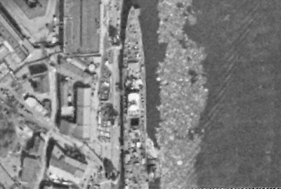 In April 1978, HEXAGON mission 1214 photographed Leningrad. By now the ship was moored in the Neva River, its hull surrounded by the last of the winter ice. Although the image resolution was not great, it was clear that the ship was still only partially complete, with equipment strewn across its deck. Only in the next year would the remaining construction equipment be removed, revealing the ship’s unique topside, with most of its weapons concealed by hatches, and the wide array of antennas on its superstructure. The ship was over twice the displacement of the largest US Navy nuclear-powered cruiser.