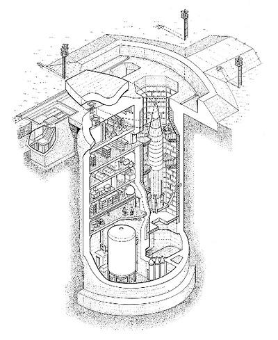 Design of the Blue Streak underground launchers predated those of the silos for the Atlas and Titan missiles, and progress was followed with interest by the USAF. Comparing a Titan II silo with the Blue Streak design, the Titan had the advantage of using storable propellants; also, the geographical constraints were not so severe. Design and construction of the Blue Streak underground launchers turned out to be so challenging [3, pp. 80-103][5, pp. 125-139] that all that was actually built was a one-sixth scale model at the Rocket Propulsion Establishment at Westcott, as well as the start of some excavations at Spadeadam and Woomera.