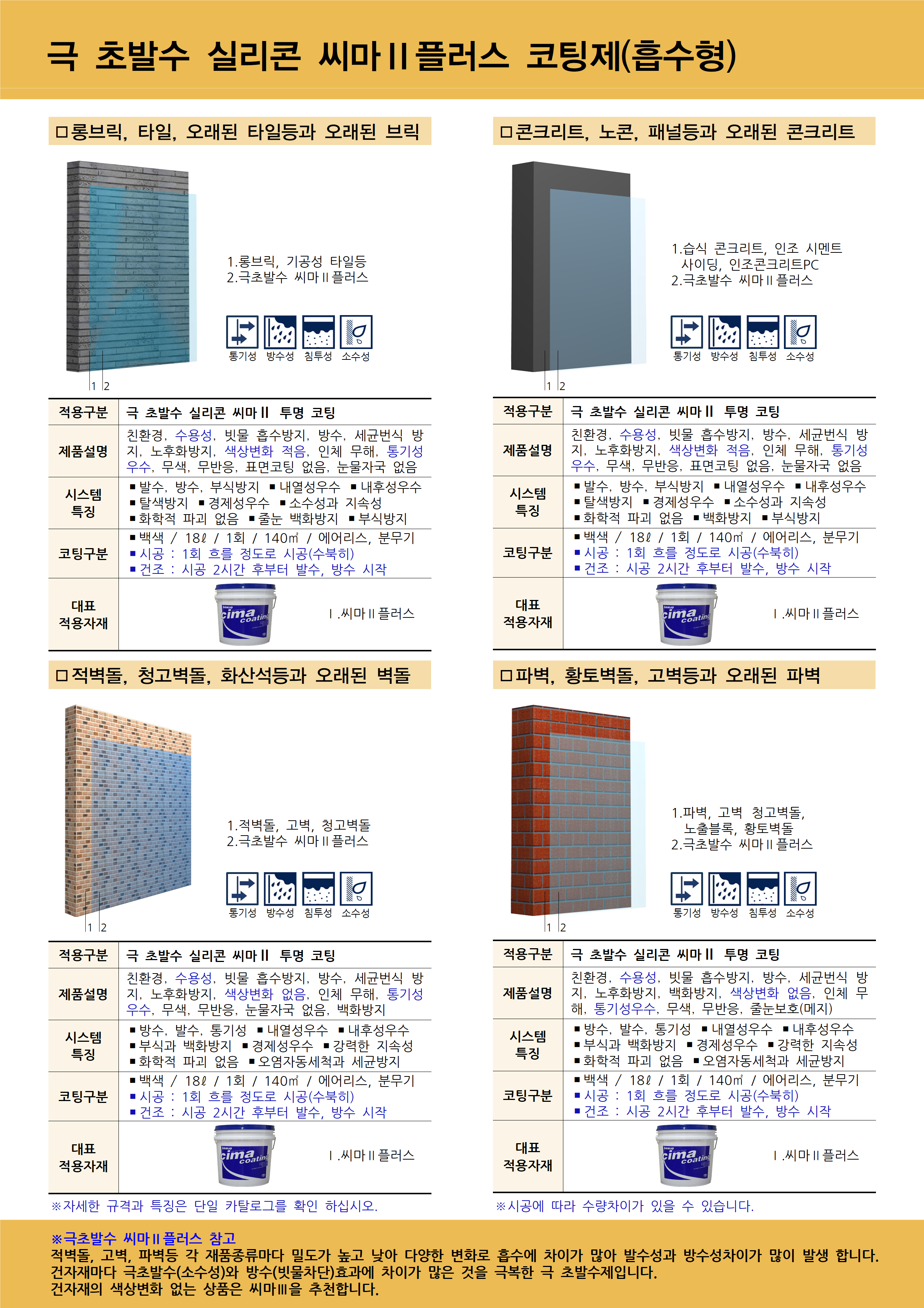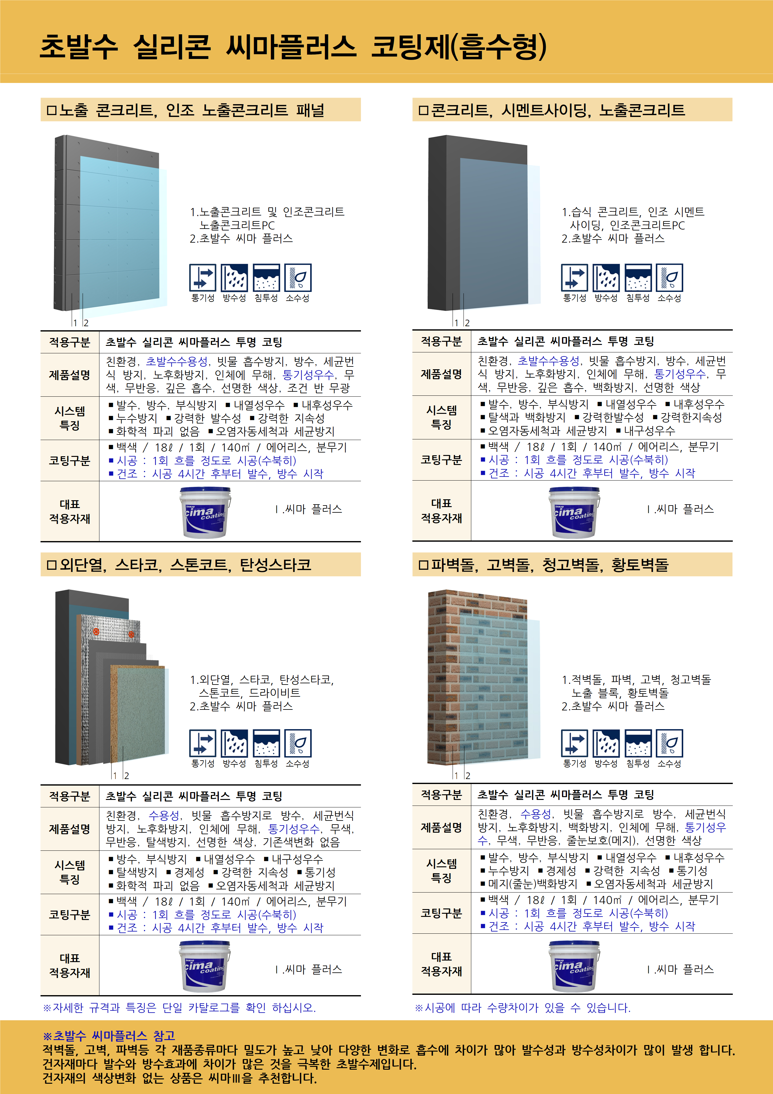 2.초소수성 씨마 플러스 : 유백색 / 18리터 / 1회 수북이 / 에어리스 또는 분무기 기준 약120-140m2