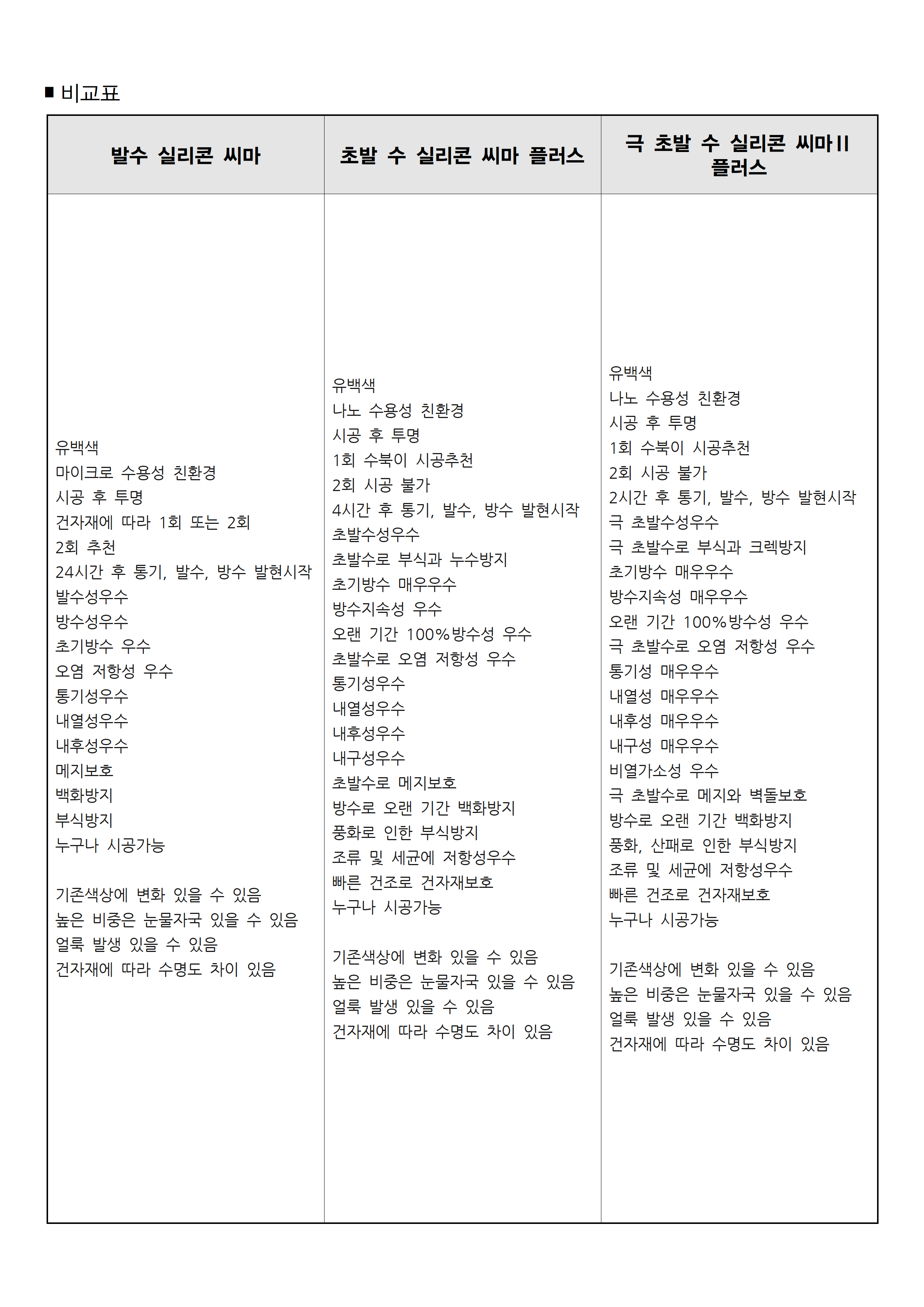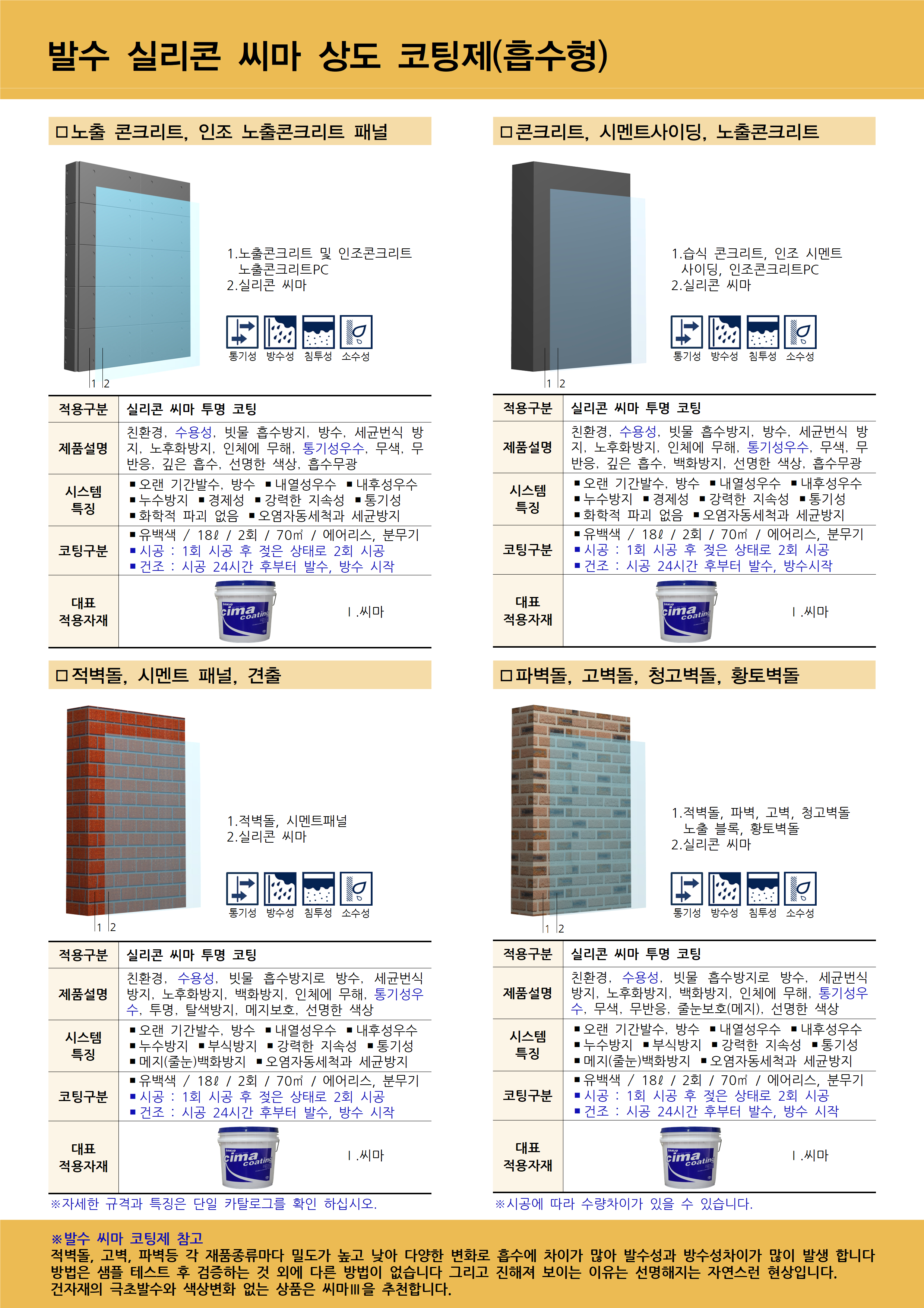 2. 발수제가 선 시공되었다면 발수성이 소멸 된 후 시공하세요.