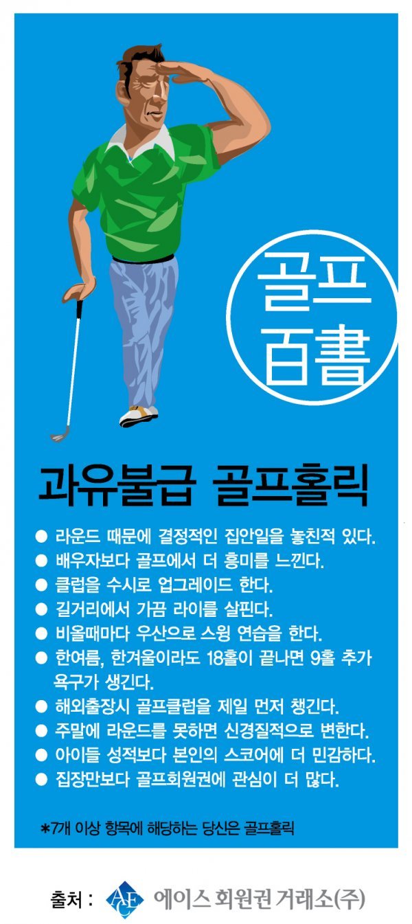 작성자4brother 작성시간 10.04.29 액기스만 잘 뽑아 놓았네요,하루님. 근디 홀릭중에 가장 중증이빠졌네요,namely " 밤에 마눌님과 affair할때 오늘 rounding의 1번 홀부터 복기를 하며 실수에대한 대책을 강구한다." 물론 18번 홀까지 다 복기 못하고 끝나는 경우가 많죠~~~ -_-