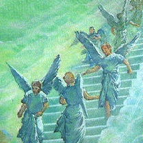 천사들이 그 사닥다리를 오르락내리락 했다.