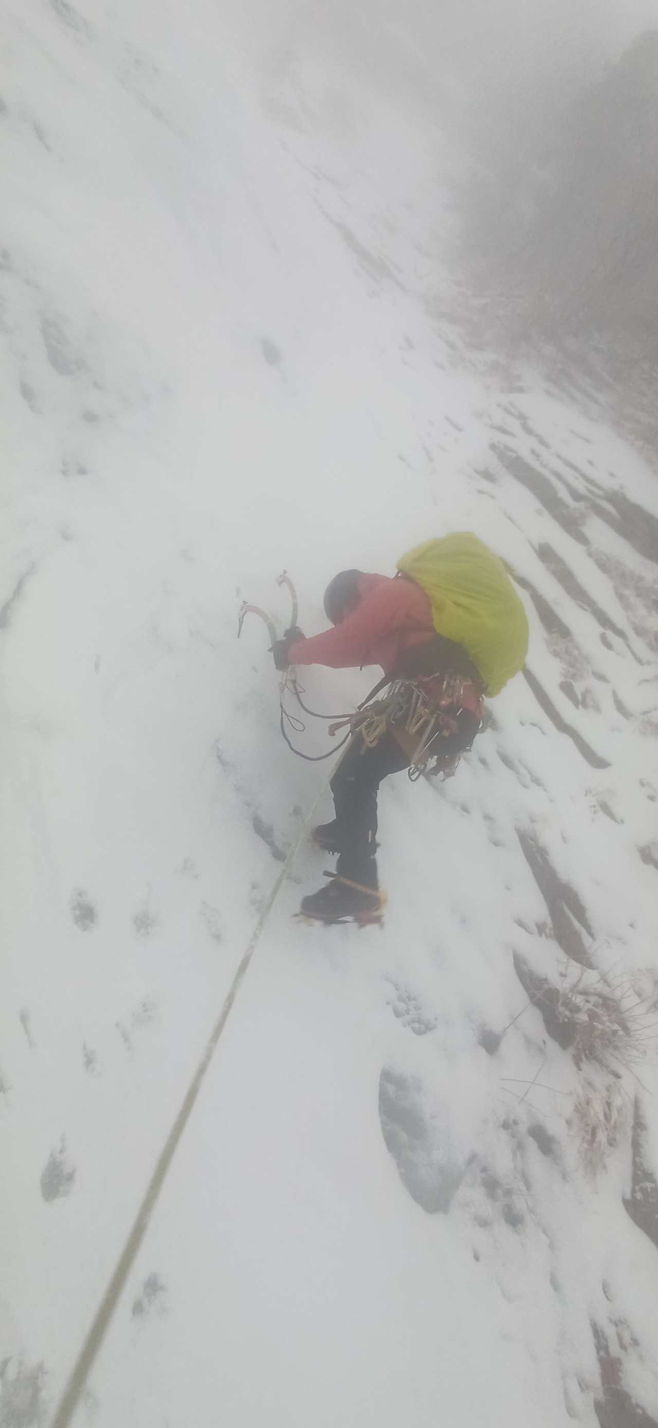 ㅡ 날씨 : 26일 밤, 설악동에 보슬비 내림( 일기예보 : 27일 새벽 ㅡ 오전 8시까지 비 ) : 27일.. 하루 종일 가랑비, 가랑 눈 내림.. ㅡ 26일 : 규식씨의 회사 일정이 .. 26일 오전에 있어서, 11시 20분경(?) 야탑 => 설악동으로 출발 ㅡ 27일 : 오전 5시 10분... 모텔 출발.. ㅡ 5시 20분경, 산행 시작.. 11시에 건폭 도착. ㅡ 간단 행동식 취하고, 12시부터 등반 시작. ㅡ 눈과 짙은 안개( 가스 )로, 약 200m 거리를 등반하고 하강. ㅡ 경사가 30 ~ 60( 짧은 거리 ), 발목에 힘이 엄청 들어 감....힘든 설빙벽 등반. ㅡ 로프 60m x 9.2mm 방수 기능 없는.. ㅡ 선등 규식, 빌레이 노성. ㅡ 3시에 하강 완료.. 장비 정리하고 하산 시작.. ㅡ 7시에 신흥사 입구 도착.... ㅡ 규식씨가 로프, 아이스 스크류 1세트 등 지첨 ㅡ 노성은 아이스 스크류 2개와 퀵드로 6개... ㅡ 규식씨 고생 많았습니다... ** 건폭 ㅡ> 대청봉 : 양폭애서 숙박하고, 아침 일찍( 새벽 5시 ? 6시 ? ) 출발해야, 느긋하게 등반하고, 제대로 저녁 뒷풀이 하고 귀경 가능 ??? |