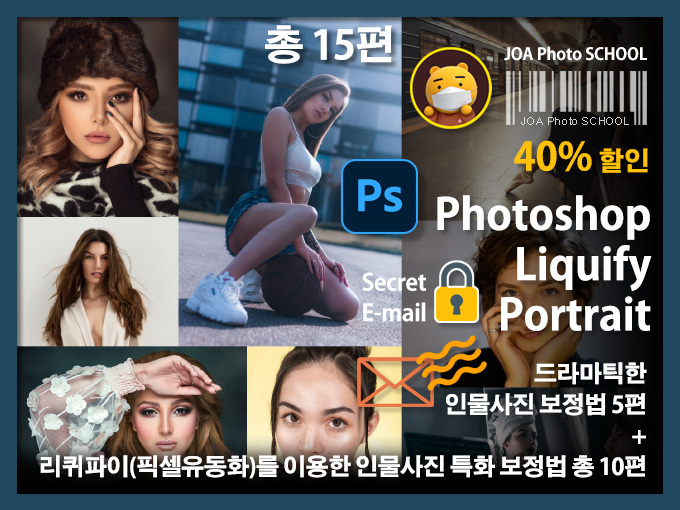 포토샵 픽셀유동화(리퀴파이)를 이용한 인물사진 특화 보정법과 드라마틱한 인물사진 보정법 학습 영상입니다. 레벨은 중급입니다. 본 홈스쿨링은 USB 동영상만으로 구성되어 있습니다.