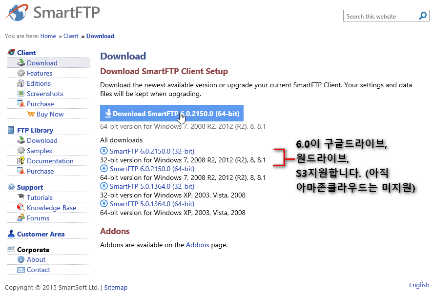 원드라이브, 구글드라이브, 아마존 S3 지원은 6.0버전만이 지원합니다. 5.0 버전은 지원하지 않습니다.